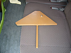 | これがこのコーナー支え。端材を組み合わせて最後にペンキを塗って完成。ネジの部分の出っ張りが車体枠にうまく噛んで落ちないようになっている。 | ![]() |