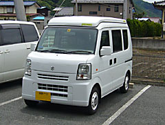 | ホイールキャップは純正のグレーで平ぺったいやつからこの「ミケロッティ・ディーン」風のやつへと交換された。 エブリイバンの純正タイヤは145R12であるがディーンの12インチサイズは現在販売されていない。よってこれを履かせようと思ったら13インチへインチアップしてタイヤごと交換ということになるのだが、これは新品の純正タイヤを捨てるということにもなり、不経済きわまりない上に貨物車には貨物車用タイヤを履かせないと車検を通らないとの噂もありディーンを履かせるのはあきらめていたところこれにそっくりな「パチもの」ホールキャップが販売されているのをネットで知り早速購入した。 これで見た目もばっちり、純正タイヤも無駄にならず、お値段も1/10で済んでお財布も大喜び。 なお貨物用タイヤは耐荷重性に優れるがカーブなどでのグリップ力が弱く運転には注意が必要。走行ノイズも大きく乗り心地も硬め。冬用タイヤは乗用車用の13インチ品を購入する予定。 |